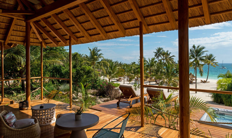 All of Zuri’s bungalows, suites and villas are fitted-out with a mix of stylish contemporary furniture and local artisanal features and artwork, ensuring a wonderful tropical experience of indoor and outdoor living, with rooms flowing seamlessly out to generous terraces surrounded by lush tropical gardens. All-inclusive and full board supplements are available upon request, in addition to standard half board rates. The bungalows are equipped with a mix of contemporary and curated local furniture and decorated with a range of African artwork. The outdoor showers complement the gleaming modern bathrooms indoors and the large private terraces provide an extended area that is ideal as an outdoor living room. Separate units surrounded by a tropical garden, with private terrace that turns into an open-air living room with a hammock and seating area.