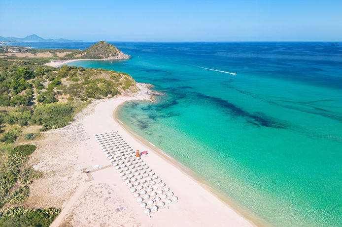 Set within the unspoiled landscape of Sardinia’s south-eastern coastline, Spiagge San Pietro Resort is a haven of tranquillity where contemporary design blends effortlessly with the surrounding Mediterranean scenery. Surrounded by fragrant, manicured gardens, the resort unfolds like a charming village, just a short walk from Cala Sinzias — one of the most beautiful beaches in the area.