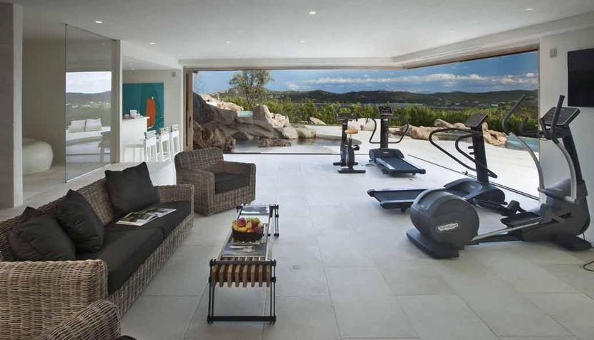 Luxury villa with elegant spaces and luxury comforts in Porto Cervo area. This villa features a contemporary design built of stone and local materials, with six and four staff bedrooms. The highlights are a pool with a gym area, massage rooms with a SPA and outdoors with a spacious garden and several lounge areas.